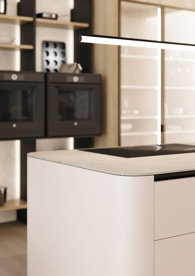 From every angle, Leicht’s curved panel kitchen is a lesson in balance. The softly contoured side panels—offered in a range of materials and thicknesses—integrate effortlessly with cabinet fronts and countertops. Every joint, radius, and finish is meticulously planned to maintain a cohesive flow throughout the space. It’s more than a curved kitchen—it’s a fully considered design language that speaks of innovation and refinement.