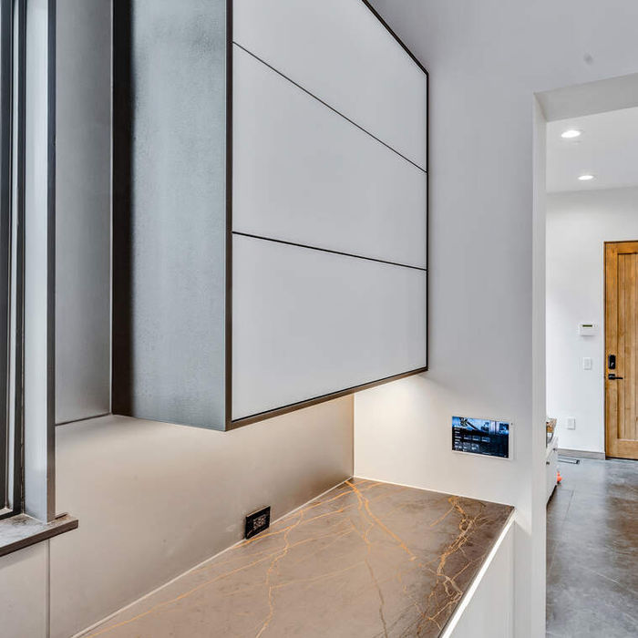 Leicht's well thought-out German kitchen cabinets and organization systems provide sophisticated task functions and storage right down to the last very last detail. There is a designated space for everything needed for this modern family. The kitchen was designed with two islands to provide an eating area as well as a separate cooking and preparation space. High quality integrated appliances offer state-of-the-art functional features. Making it one of our most modern European kitchens.