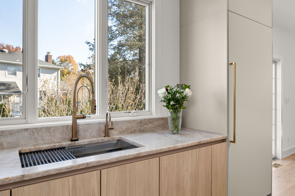 One of the notable changes is addition of an oversized window in front of the sink to help bring light and connect the kitchen to outdoor space.